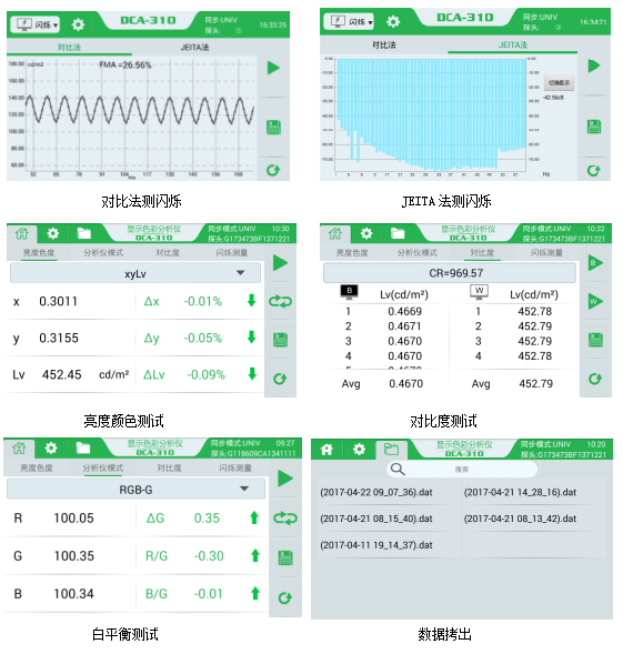 - DCA-310 color analyzer (flicker measurement)