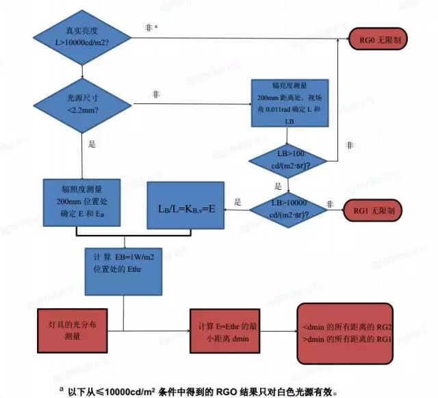 IEC TR 62778主要是基於IEC 62471給出了照明產品的光生物安全的測量和評價方法,重點之一是在產業鏈上傳遞光生物安全信息,根據亮度守恆和集光率守恆的原理,通過測量集成等級較低的產品(如LED封裝、LED模組)的光生物安全信息,並將其傳遞到等級較高的照明產品(如LED燈、LED燈具),從而減少企業的測量成本。因此,IEC TR62778對光源的危害等級分類方法與IEC 62471也有所不同,總體來說由於涉及到信息傳遞,要考慮最壞的情況,62778的評級更為嚴苛了。因此建議大家找到信息傳遞與減小測量成本的平衡點,選擇合適的產品等級作為光生物測量起點,以免最終產品危害類型過高,影響產品評價。